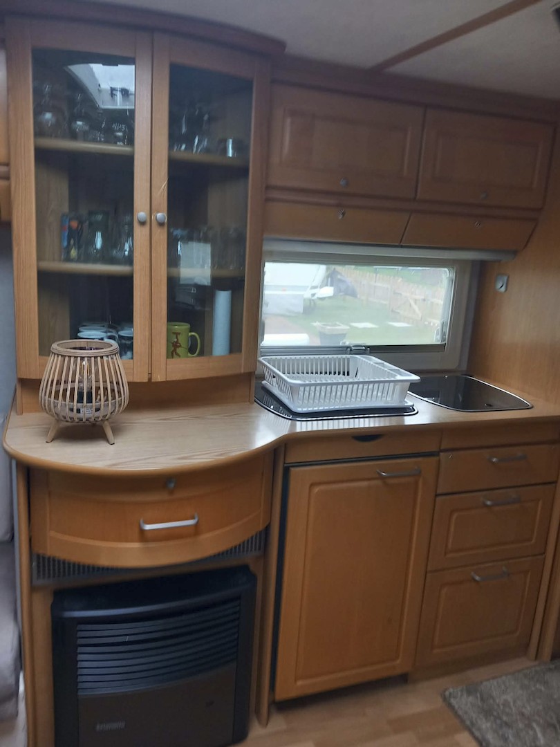 • réfrigérateur, cuisinière à gaz,1 évier, eau chaude électrique, réservoir d'eau de 40 l