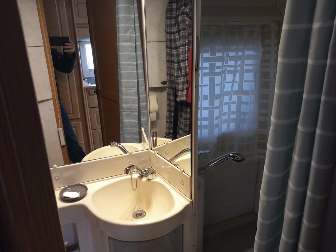 - douche, lavabo + draagbaar toilet